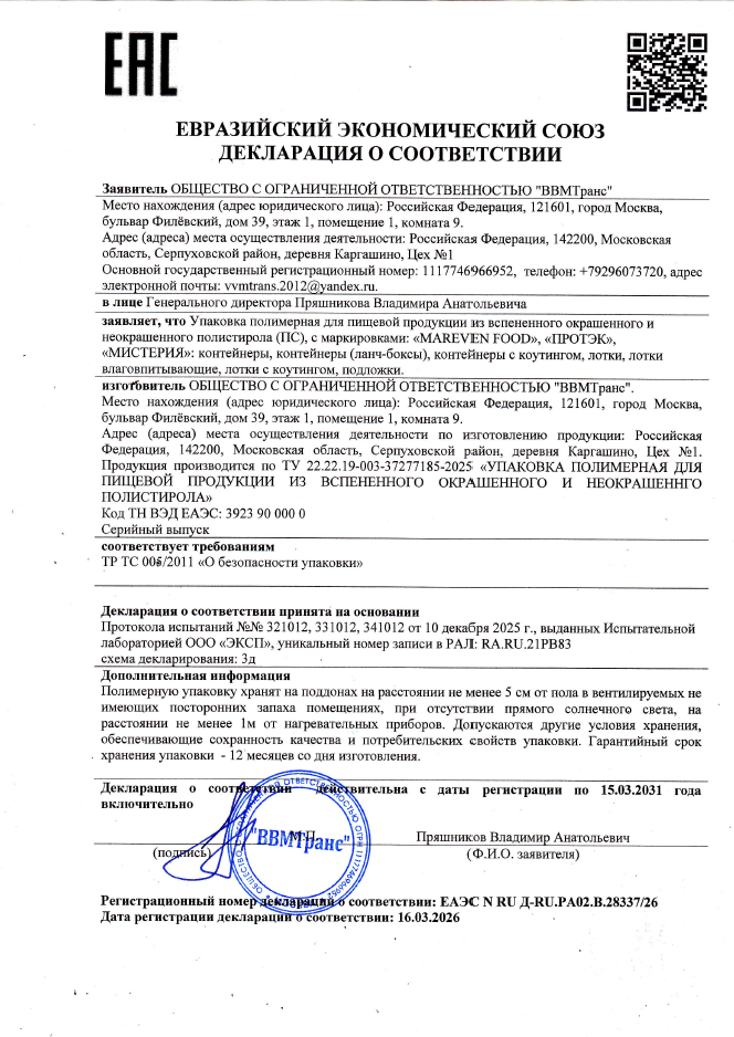Подложка ВПС 225х160х35 (AV-20) желтая автомат