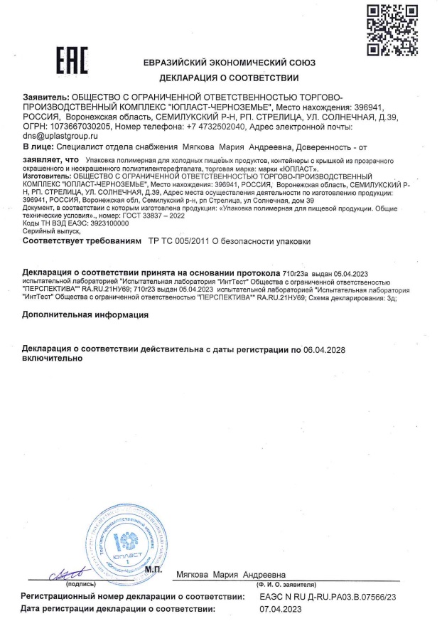 Контейнер ПЭТ квадрат ЮПК-1212 126х126х5 крышка прозрачная